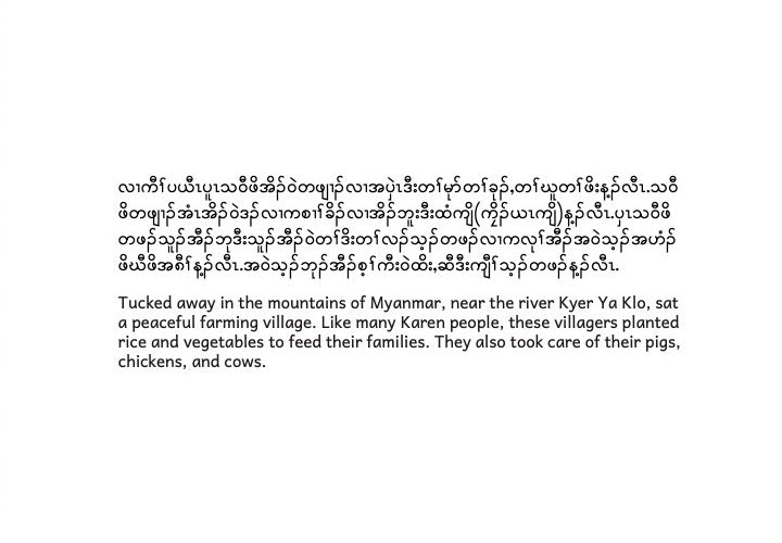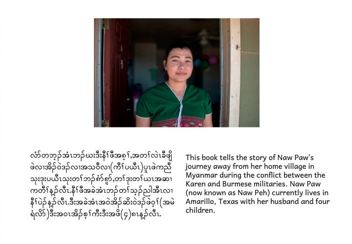 Our first published storybook! This book tells the story of Naw Peh’s journey away from her home village in Myanmar during the conflict between the Karen and the Burmese militaries. Not only did Naw Peh write the story herself, but she also illustrated it alongside her husband!
