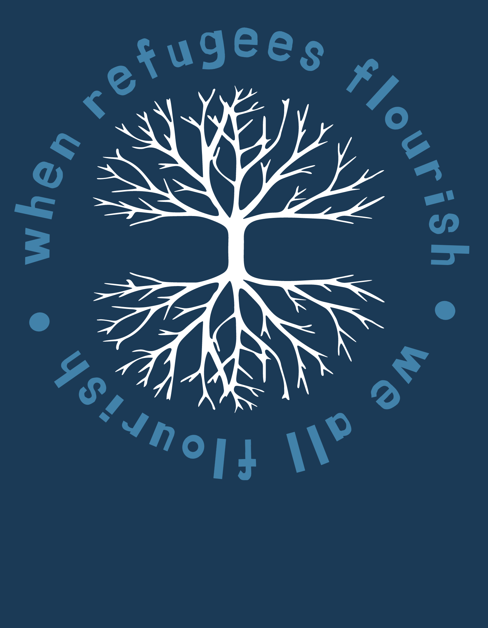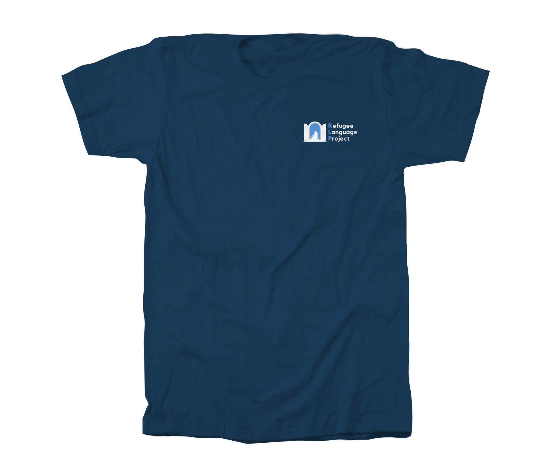 This District t-shirt in dark blue has the RLP logo on the front right pocket and a nod to our goal of mutual flourishing on the back with the phrase “When refugees flourish, we all flourish” on the back.
